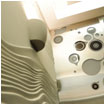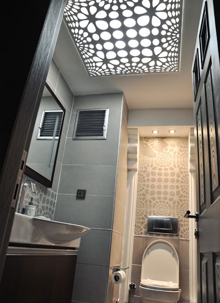 Bespoke design roof lightning is inspired by the pattern of the ceramic tiles in the women bathroom