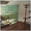 All the decorating and furnishing elements such as pickle display units, lightning elements such as chandelier and wall lampshades, wall patterns and exterior facade are designed bespoke within the concept by the designer. An assertive chandelier welcomes people at the centre of the main entrance space with its stateliness and iconic posture which refers at Ottoman style. Ottoman’s 10 side-star and tulip pattern are used all over the project in a stylish way. A gold plated high wall is implemented by casting technique with a unique minimalist pattern and the same pattern is used behind the reception desk as a separator which is produced with fusion-glass and cutting techniques. Again, same pattern is used on the opposite wall which hosts the Ottoman bespoke design sculptural wall watch.