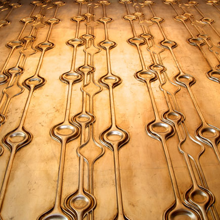 Gold plated wall is implemented by casting technique with a unique minimalist pattern